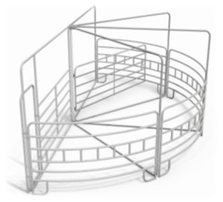 We offer a 180 degree and 90 degree sweep system in both our Ranger and Hot Dipped lines. The Ranger sweep system is made from 1 5/8” 16 gauge galvanized tubing, and the Hot Dipped sweep system is made from 2" 16 gauge galvanized tubing. Both options are 64" tall. Curved panels make up the bend in the sweep system and a self latching gate pushes around the sweep to push cattle into an alleyway. Held together with panel clamps, the system is portable and easy to take down and set up if needing to move locations. Sweep systems can swing right or left depending on your preference.