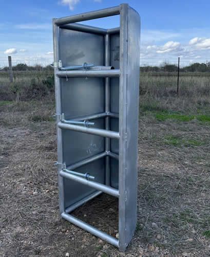The feeders that last a lifetime. Our hot dipped galvanized bunk feeder is made from 2” 16 gauge tubing and 16 gauge sheet metal, making it the longest lasting and toughest bunk feeder on the market. Troughs are 20’ tall and available in 2’x10’ and 3’x10’ lengths. Drain holes on the ends prevent water from collecting in the feed.